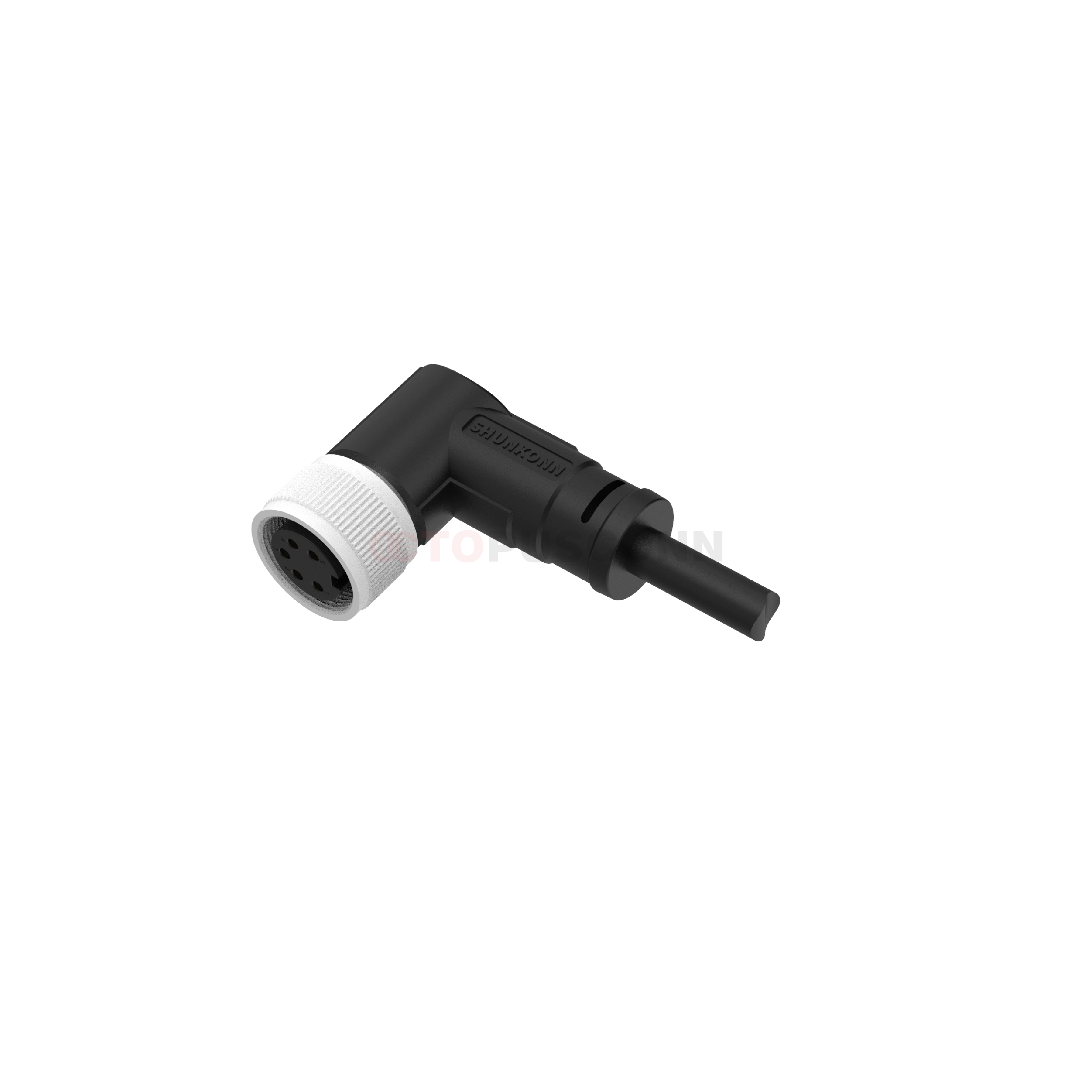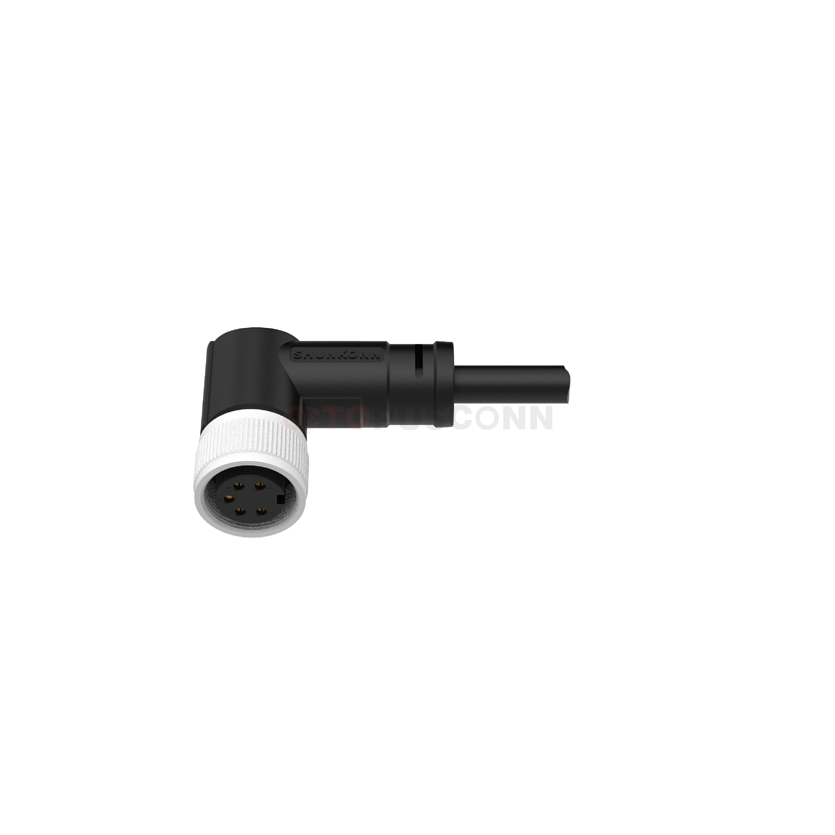 90° Angled Configuration: Adopts an L-shaped bend design, differing from the straight configuration of vertical models. It enables cables to exit at a 90° angle, preventing cable damage caused by excessive bending at equipment edges while significantly saving installation space. Ideal for scenarios with dense internal wiring or restricted interface orientation in equipment. Integrated Protection and Anti-Interference: The overmolded construction combined with IP67 protection rating effectively addresses challenges such as oil contamination and humidity in industrial environments. Selected models are equipped with a 360° shielding ring to reduce electromagnetic interference (EMI), ensuring accurate signal transmission and meeting the high-frequency signal transmission requirements of automated production lines.